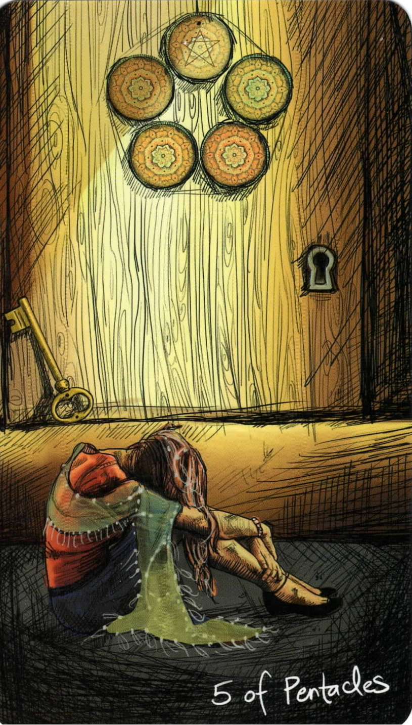 Fem mynter er ofte et tegn på materielle eller økonomiske problemer. Du befinner deg kanskje i en situasjon der du føler deg fattig? Dette kan selvsagt også være på flere områder i livet ditt, ikke nødvendigvis bare økonomisk. Følelsen av å ikke ha alt på stell er ikke noen god følelse, og man er rett og slett bare trøtt og lei. Ønsket om å virkelig ha det man trenger i livet er stort, men man har liksom ikke kapasiteten til å gjøre noe med det. Sannsynligheten for at det er dine egne dårlige valg som har satt deg i denne situasjonen. Du har brukt mer enn du har hatt, og man ser liksom ikke at man har prioritert feil. Husk at når en dør lukkes, så åpnes alltid en ny.Kortet viser til en situasjon som er midlertidig, og løsningen kan være nærmere enn man tror om du bare gjør noen kraftige grep. Det vil ikke være lett fremover, men du klarer å rette det opp om du bare går inn for det. Er du i et dårlig kjærlighetsforhold? Da kan kortet være en pekepinn på at den ene er mye sterkere i forholdet enn den andre – og dette må balanseres om det skal bli noe bedring.
